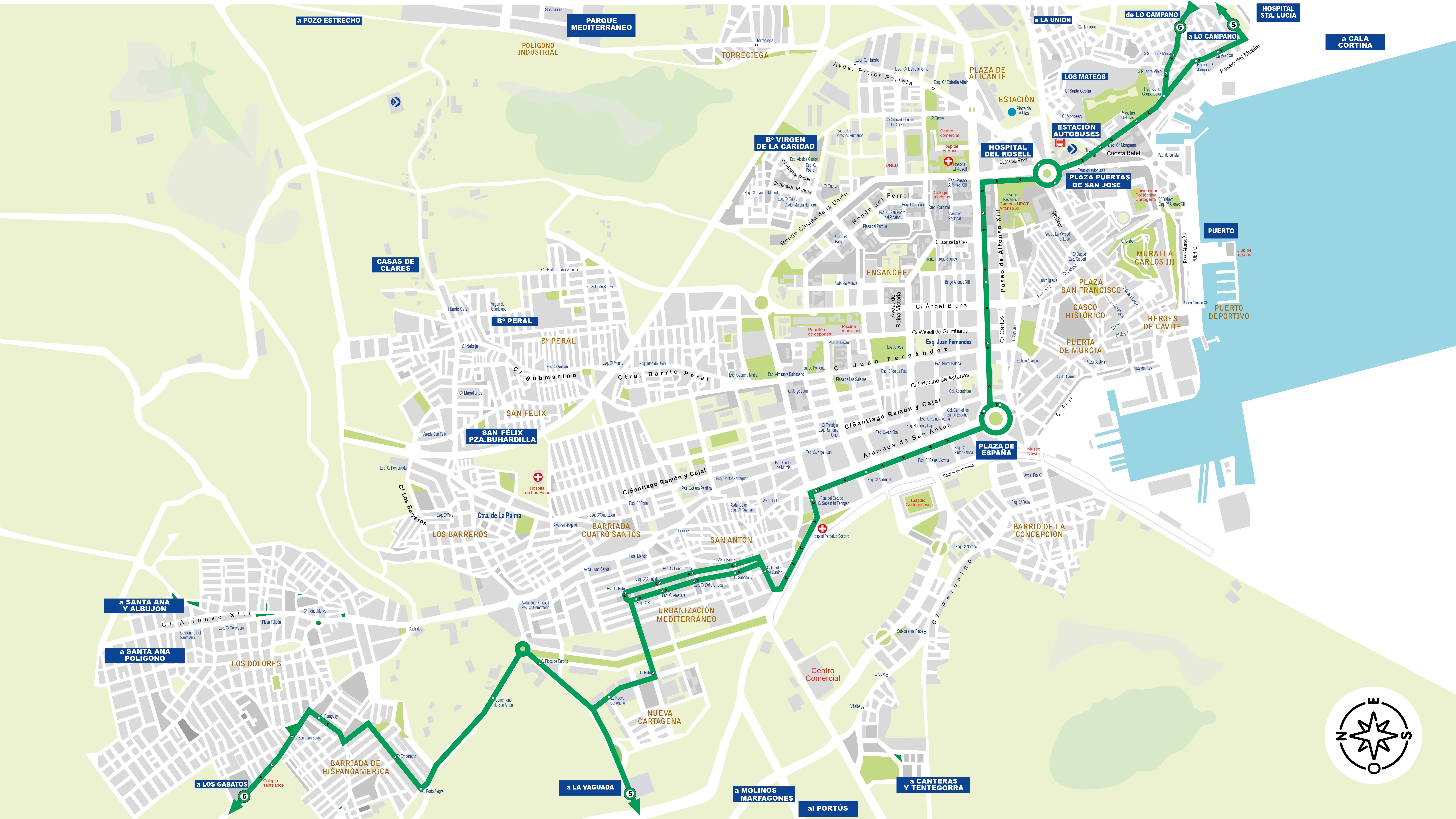 Desde las 6:30 hasta las 21:30, cada 60 minutos (último viaje, fin en Puertas de San José)